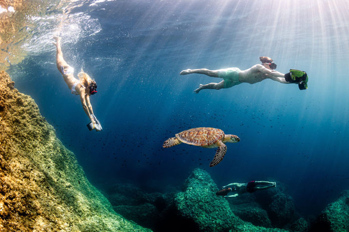 Rencontres magiques Avancer au dessus des coraux, Parmi les dauphins, tortues et poissons tropicaux.